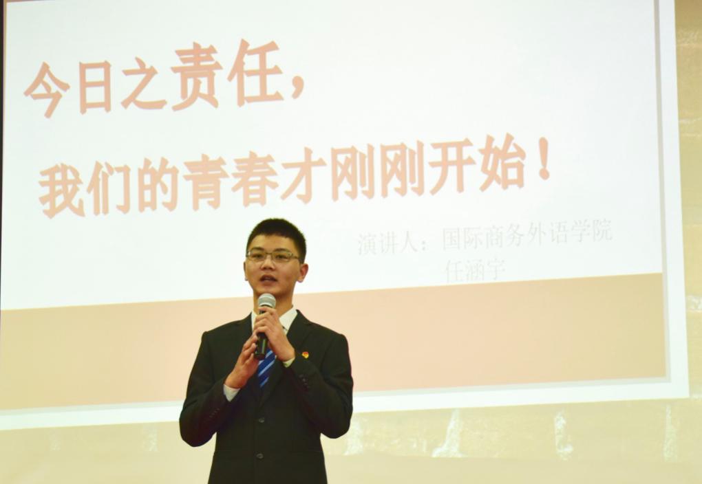 經過各個學院的層層選拔,共有九名同學進入最后的決賽。比賽中,會展與旅游學院的謝雅妮用自己的親身經歷為同學們講述了“我們的未來比我們想象的更美好”;馬克思主義學院的黃克柔則深入研讀時代趨勢,發出了“擁抱新時代,踐行新思想”的聲音;國際商務外語學院的熊正從國之棟梁談到生活實踐,呼吁青年一代敢于嘗試,勇敢邁出第一步;外語學院的任涵宇則從責任談起,直擊眾人心扉,扛起肩上的責任,以青春自我譜寫華章。