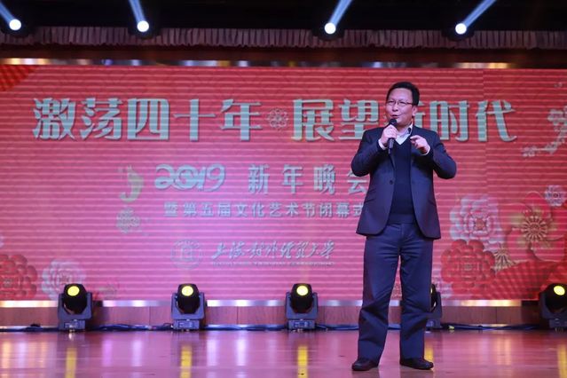 四十年改革開放,滄海云帆,夢圓東方;改革開放四十年,壯麗航程,萬千氣象。在2018即將接近尾聲的日子里,師生歡聚一堂,慶祝改革開放四十周年,迎接新年的到來。12月27日晚,主題為“激蕩四十年·展望新時代”的2019年新年晚會暨第五屆文化藝術節閉幕式在信息樓507報告廳隆重舉行。本次晚會由學校主辦,黨委宣傳部、校文明辦、校工會、校團委承辦,黨委辦公室、校長辦公室、黨委教師工作部和老干部辦公室協辦。校領導朱國宏、許玫、祁明、陳潔、徐永林和附校校長陳偉平出席晚會現場,各單位部門負責人、各學院黨委(黨總支)書記、院長、學校優秀教師代表、優秀學生代表和近500名師生觀看了本次晚會。