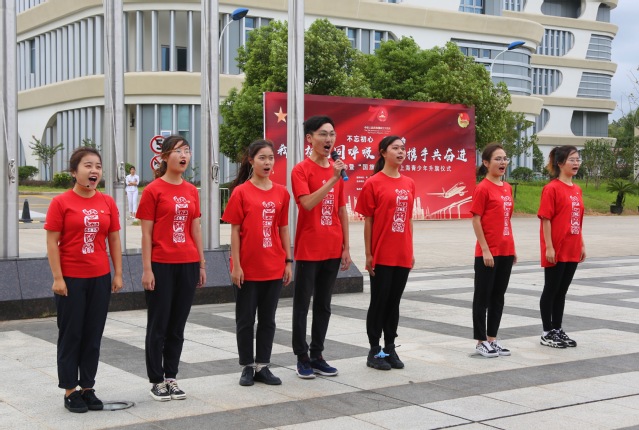 五星紅旗下,團員代表張子熠發表了題為《敢有青云志,莫欺少年窮》的演講,用鏗鏘有力的聲音表達了當代青年志達青云、榮校報國的決心,也抒發了對祖國母親無盡的熱愛之情。緊接著,由7位優秀暑期社會實踐項目代表同學,也以朗誦的形式匯報自己的所思所感,向祖國70周歲生日獻禮。