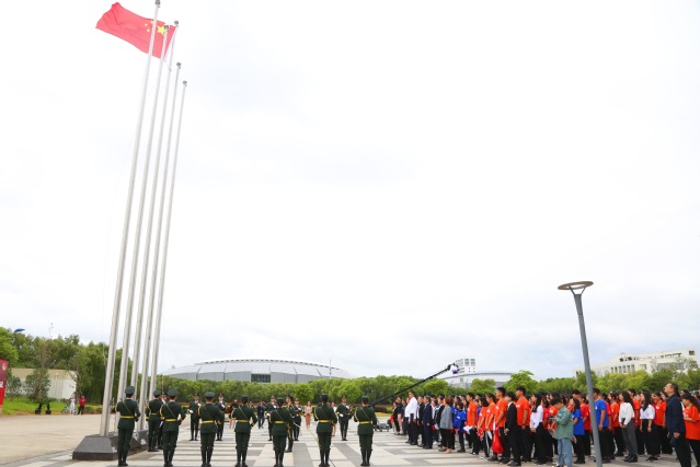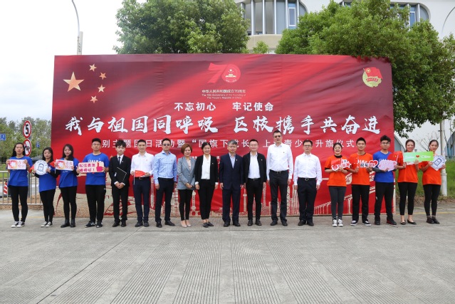 9月22日上午,“我與祖國同呼吸、區校攜手共奮進”特別主題團日活動暨“國旗下成長”上海青少年升旗儀式在我校圖文信息大樓南廣場舉行。共青團上海市委副書記戴冰、松江區副區長陳曉軍、校黨委副書記、副校長祁明出席升旗儀式,“青馬工程”團員青年代表、廣富林街道團員青年代表、團區委各直屬團組織負責人、松江區共產主義學校學員代表和我校師生代表近300人參加本次活動。