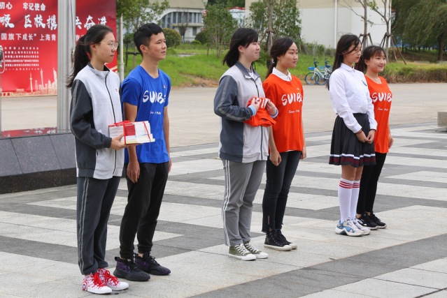 隨后,全國優秀共青團干部、松江二中團委書記李捷帶領現場團員青年重溫入團誓詞、共唱共青團團歌。松江區共產主義學校的學員接受我校“青馬工程”團員青年贈送的禮物。
