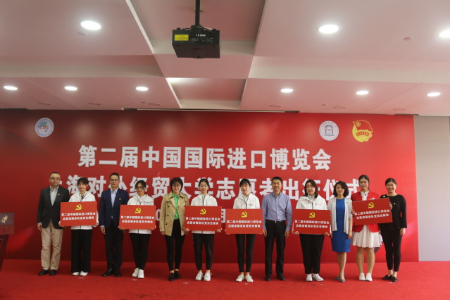 與會領(lǐng)導(dǎo)分別為第二屆中國國際進(jìn)口博覽會志愿者黨員先鋒崗授牌。