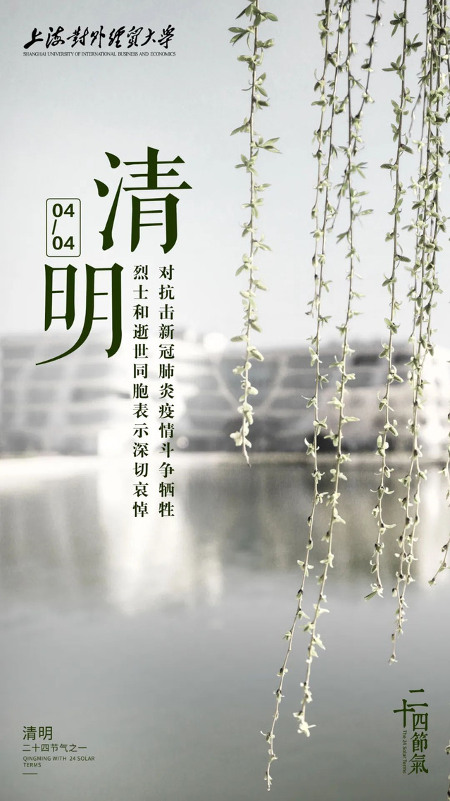 “逝者已矣,生者如斯。”今天,我們度過了一個特殊的清明節(jié)。上午十點,鳴笛聲與防空警報在城市和鄉(xiāng)村每一個角落的上空響起,上經(jīng)貿(mào)大也降下半旗,表達對抗擊新冠肺炎疫情斗爭中,犧牲烈士和逝世同胞的深切哀悼。
