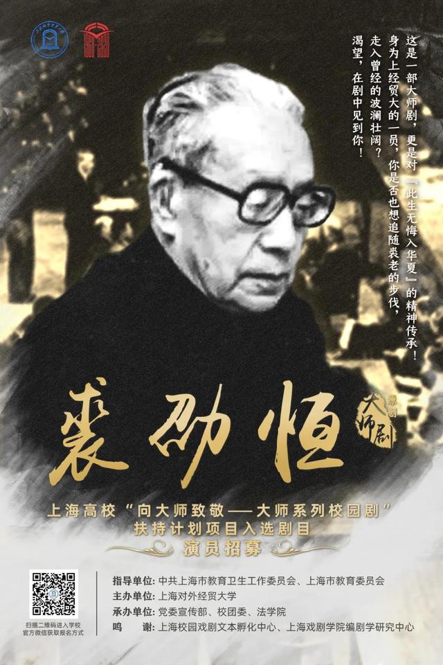 上海對(duì)外經(jīng)貿(mào)大學(xué)大師劇《裘劭恒》演員招募