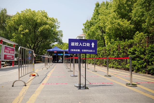 學校在學生公寓外拉起長長的一米線,貼好1.5米距離的腳印,學生須有序進入學生宿舍大廳,可以一站式辦理登記、領取防疫物資、退宿等手續,方便又快捷。在學生順利入住后,每位返校學生會發現,學校已為大家準備好貼心防疫“六件套”:每天一人一個的口罩、一根水銀溫度計、一瓶免洗洗手液、水銀溫度計使用說明、返校和辦理離校流程圖、《校園防疫小貼士》等。學校各部門、各學院也在社區主干道設立工作攤位,為同學提供其他便捷的服務。