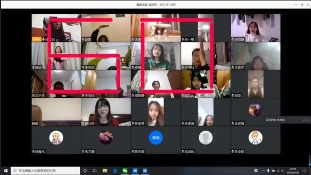 金融管理學院團支部成員在“云班會”用手勢連成數字60,飽藏著對校園的殷殷期盼以及對建校60周年的深深祝福。
