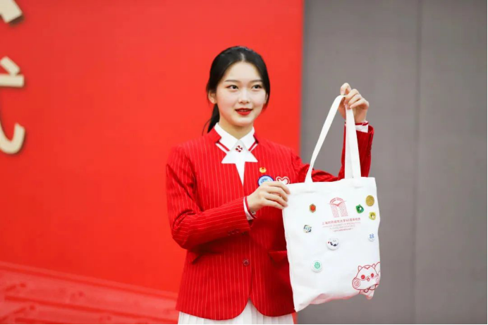 出征儀式現(xiàn)場(chǎng)還發(fā)布了進(jìn)博U形枕、帆布包、眼罩、拼圖等進(jìn)博會(huì)志愿者文創(chuàng)產(chǎn)品。各學(xué)院黨委副書記為進(jìn)博會(huì)“小葉子們”贈(zèng)送進(jìn)博會(huì)定制加油大禮包。