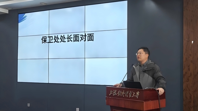 4月25日下午,黨委保衛部聯合會計學院在松江校區信息樓503教室舉辦“從中美貿易戰看總體國家安全觀”主題講座。上海國家會計學院教授鄭功、保衛處處長李少丹出席活動,全校共一百余名師生參與。