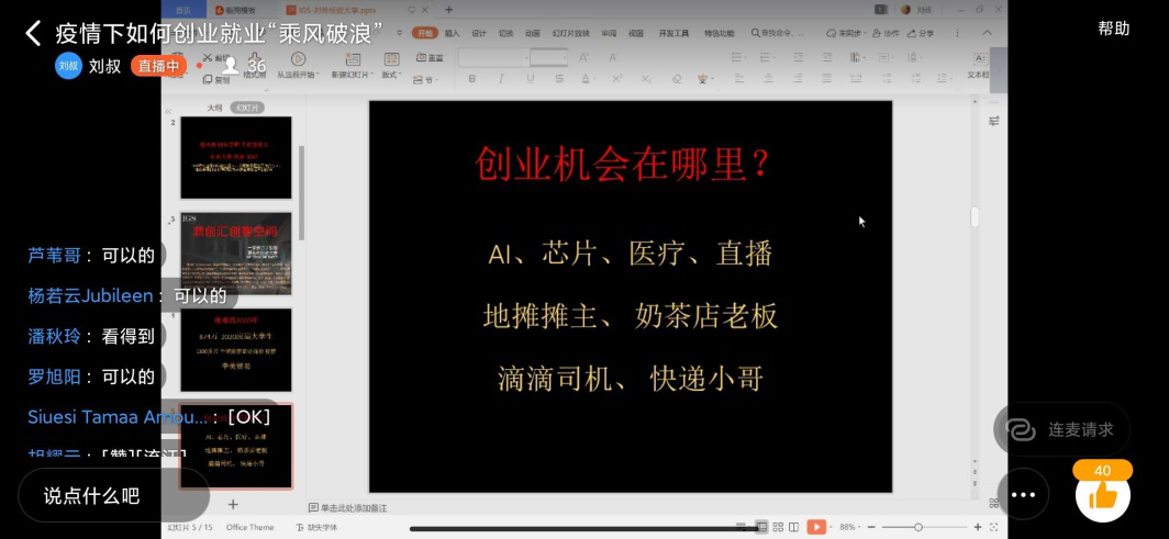 上午9:00,IF GEEK SPACE鼎創匯創始人、早期種子基金天使合伙人、行業人稱“劉叔”的劉斌老師,為我們講述疫情下如何創業就業“乘風破浪”。