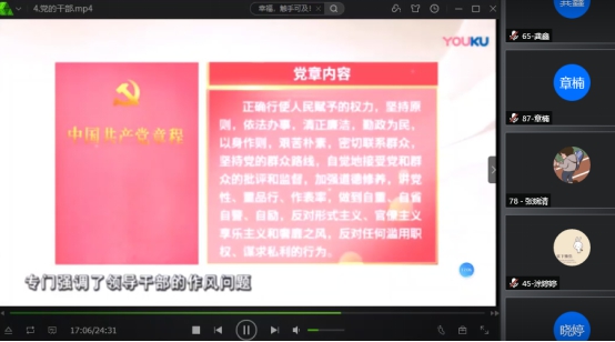 黨課最后,陳晨與師生進行互動,回答了同學們在入黨過程中和職業生涯發展的一些困惑,大家紛紛表示受益頗深。互動結束之后,大家共同學習《黨章電視輔導教材》第三集黨的組織、第四集黨的干部,進一步熟悉了相關理論知識。