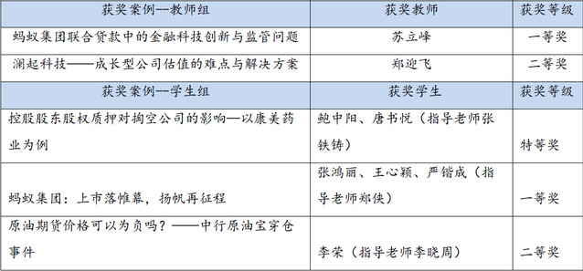 近年來,我院師生參加金融案例大賽屢獲佳績。2021我院李曉周、鄭迎飛兩位老師編寫的金融案例在全國金融案例大賽中獲獎,初立蘋、劉凌、王志偉、徐壽福和鄭俠五位老師帶領學生編寫的金融案例在上海金融案例大賽中獲獎,唐旭君和閆海洲老師案例被中國工商管理國際案例庫收錄。