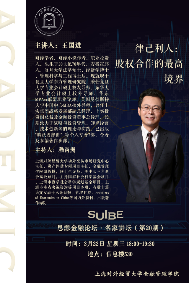 【SUIBE思源金融論壇——名家講壇第20期】律己利人:股權合作的最高境界