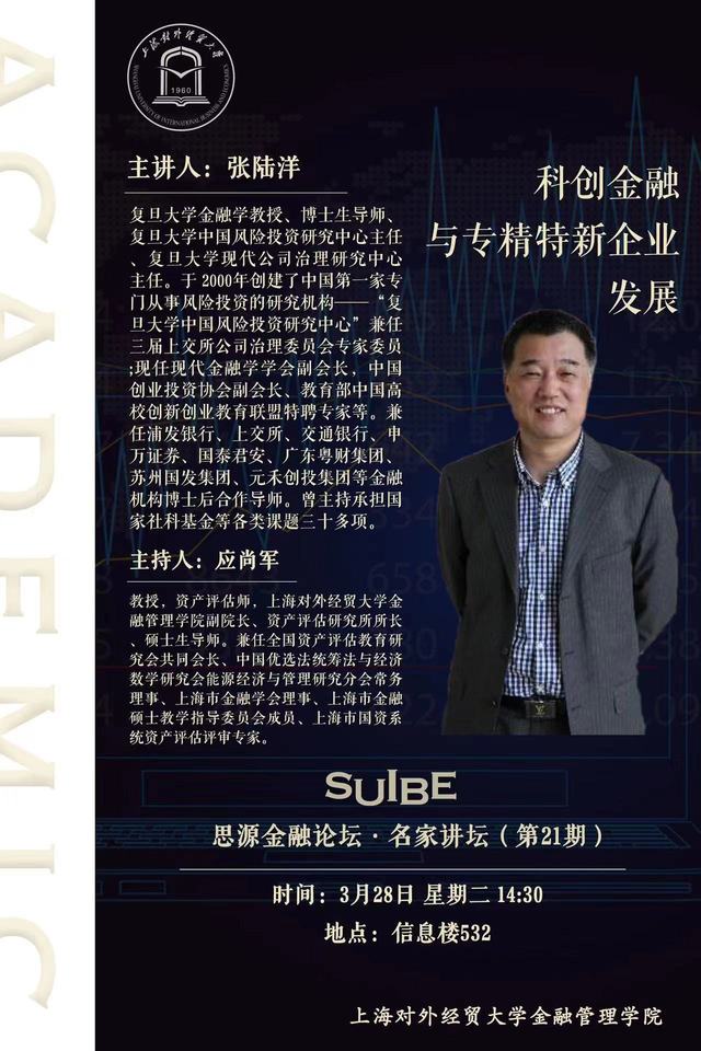 【SUIBE思源金融論壇——名家講壇第21期】科創金融與專精特新企業發展