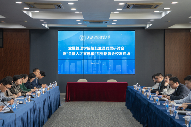 4月25日,我院2023年校友生涯發(fā)展研討會暨“金融人才直通車”校友專場招聘會在松江校區(qū)圖文信息樓舉行。上午,來自海通證券、廣發(fā)期貨、招商銀行、寧波銀行、長江證券、上海證券等金融機構(gòu)的10位校友參與校友生涯發(fā)展研討會,學院黨委書記許繼亮、院長張鐵鑄、學校校友工作聯(lián)絡處處長晏瓊、招生就業(yè)處副處長居怡、學院黨委副書記關(guān)印、副院長鄭迎飛、學院師生代表共同參會。