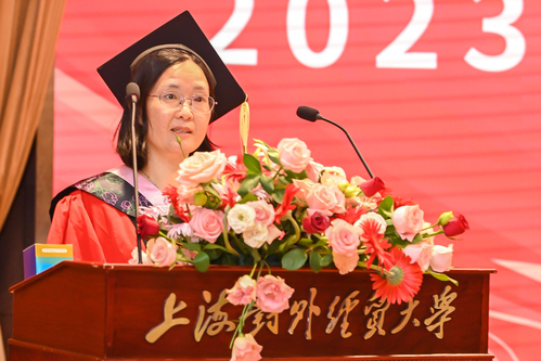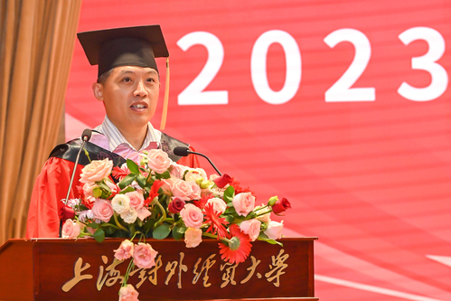 張鐵鑄為畢業生們送上誠摯的畢業寄語。他提到,在這四年的時光里,同學們經歷了一次次的探索、蛻變和成長,這些時刻已然成為了心中永不褪色的回憶。他很開心見證了2023屆畢業生從青澀懵懂的新生逐漸成長為自信、獨立、追求卓越的新時代優秀青年,全院每一位老師都為此倍感欣慰與自豪。他圍繞“勿忘理想”“敢于擔當”“不畏吃苦”“永久奮斗”“保持豁達”五個關鍵詞為畢業生上了最后一堂課,并在最后引用習近平總書記的寄語,希望同學們能夠堅定不移的聽黨話、跟黨走,懷抱夢想又腳踏實地,敢想敢為又善作善成,立志做有理想、敢擔當、能吃苦、肯奮斗的新時代好青年!