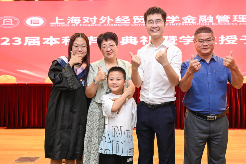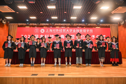 許繼亮代表學院宣讀了《金融管理學院2023屆本科生優秀畢業生名單》,并為優秀畢業生代表們綬帶及頒發紀念禮。攜四年韶華,筑無悔青春。畢業生們踔厲奮發、同舟共濟一同成就了此刻的輝煌。