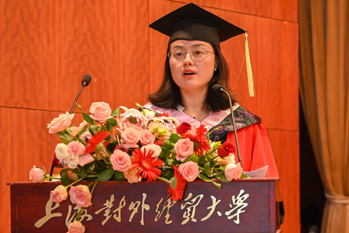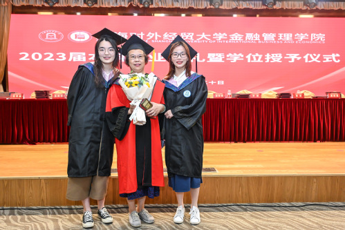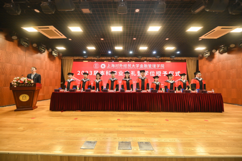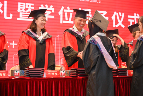 鄭迎飛宣讀《金融管理學院2023屆本科畢業生獲得學士學位名單》。隨后,全體畢業生們迎來了典禮中最重要的環節——學士學位授予儀式。學院教師代表親手為每一位畢業生撥穗并為他們授予學士學位證書與畢業證書。簡單的動作,代表著深厚的師生情誼,也滿含老師們殷切的囑托與祝福。