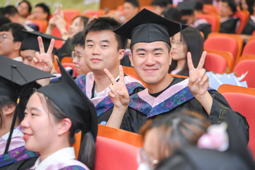 “這世界有那么多人,多幸運,我有個我們。”畢業生代表為全體師生帶來一首首歌曲,喜悅、感動、不舍在歌聲中交錯相融,同學們用歌聲為四年的大學生活畫上了一個完美的休止符,并已做好準備,奔赴人生的新篇章。