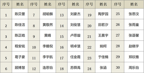 注:以學生姓名拼音的第一個字母排序