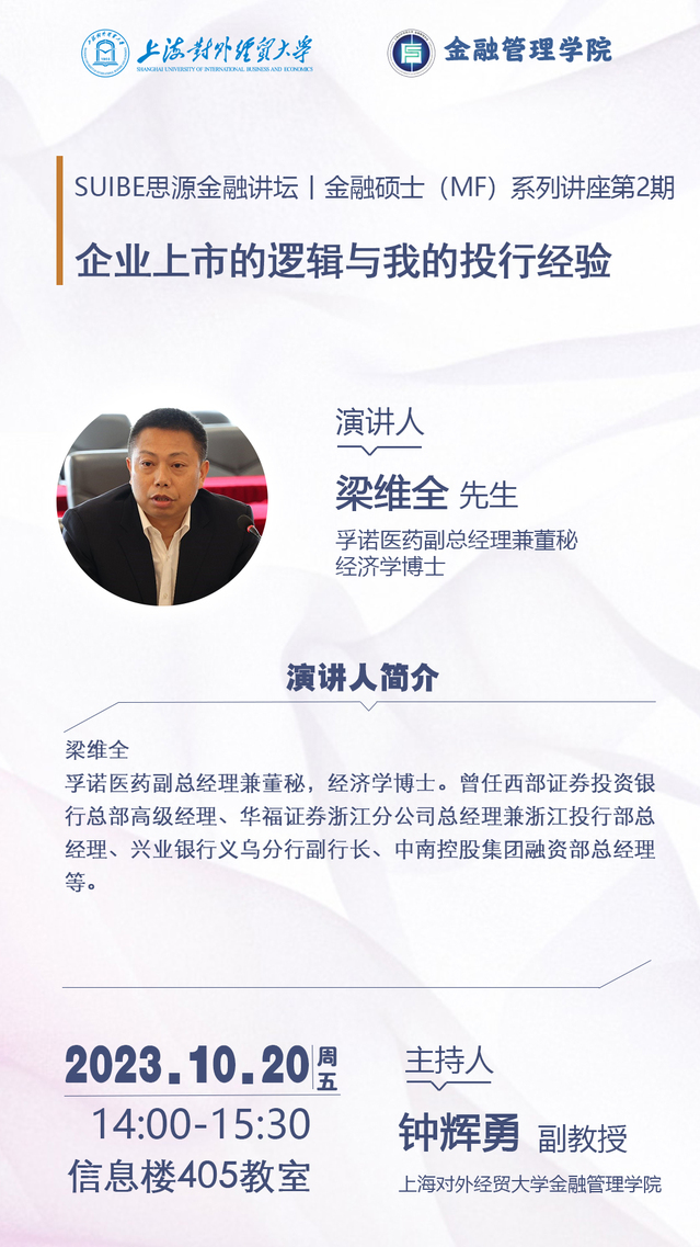 【SUIBE思源金融論壇——金融碩士 (MF) 系列講座第2期】企業上市的邏輯與我的投行經驗
