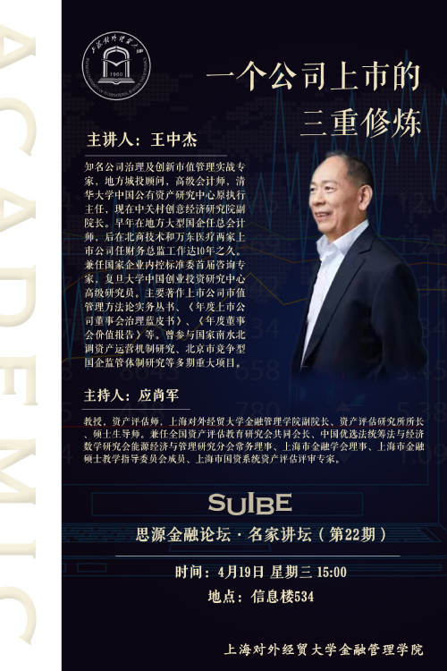 【SUIBE思源金融論壇——名家講壇第22期】一個公司上市的三重修煉