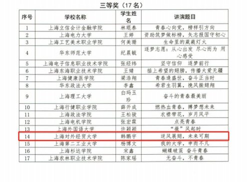 學院2021級金融學專業研究生韓鵬宇以《逆風展翅未來可期》為題發表精彩演講,以出彩的表現獲得大賽三等獎。金珺雪、張曉萌獲優秀指導教師。