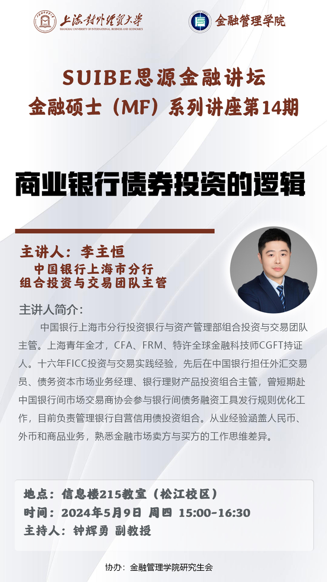【SUIBE思源金融論壇——金融碩士(MF)系列講座第14期】商業銀行債券投資的邏輯