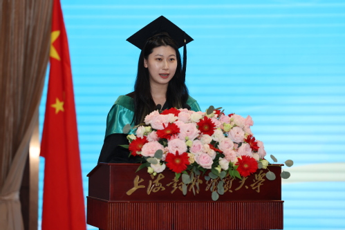 隨后,李奕霏同學作為優秀畢業生代表發言,她表達了對老師、家人以及朋友的感謝。她鼓勵全體同學大膽嘗試自己想走的道路,趁年輕去嘗試、去碰撞、去奔赴。