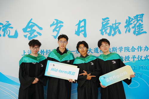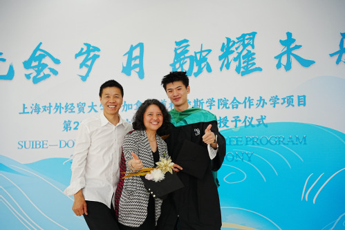 6月5日,上海對外經貿大學與加拿大道格拉斯學院第23屆畢業生畢業典禮暨學位授予儀式在松江校區圖文信息大樓507報告廳隆重舉行。道格拉斯學院校長Kathy Denton、副校長Leonel Roldan-Flores、全球合作經理Jennifer Zhao、校長辦公室名譽行政官歐陽光偉,上海對外經貿大學黨委書記祁明、副校長徐永林、金融管理學院領導班子成員、中加合作教師代表、輔導員、學生家長代表以及第23屆中加合作辦學項目全體畢業生出席本次典禮。典禮由道格拉斯學院副校長Thor Borgford主持。