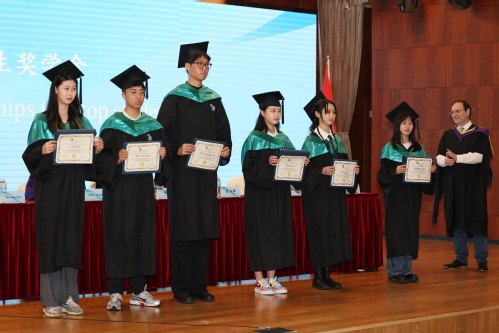 張鐵鑄宣讀獲得獎學金名單,Leonel Roldan-Flores為優秀畢業生頒發獎學金證書。