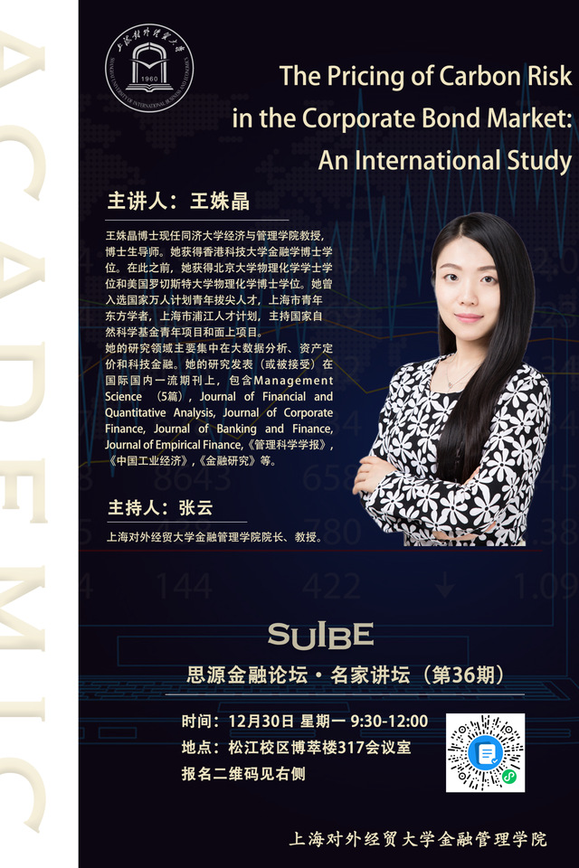 【SUIBE思源金融論壇——名家講壇第36期】The Pricing of Carbon Risk in the Corporate Bond Market: An International Study