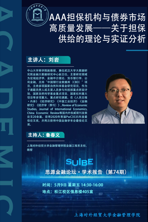 【 SUIBE思源金融論壇——學術報告第74期 】AAA擔保機構與債券市場高質量發展——關于擔保供給的理論與實證分析