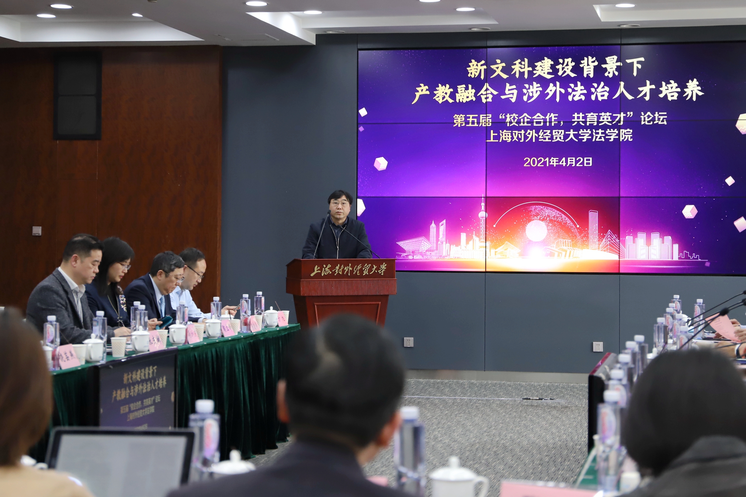 徐永林在致辭中對與會單位代表表示熱烈歡迎,對各用人單位長期以來對學(xué)校各項工作的大力支持表示衷心感謝。他指出,本次論壇聚焦新文科建設(shè)背景下產(chǎn)教融合與涉外法治人才培養(yǎng),法學(xué)院應(yīng)不斷拓展與上海各級司法機構(gòu)、仲裁機構(gòu)的合作渠道,加大并創(chuàng)新涉外法治人才培養(yǎng)力度與模式。期待法治實務(wù)部門在與我校建立培養(yǎng)涉外法治人才協(xié)同機制的基礎(chǔ)上,深度參與人才培養(yǎng)全過程,分享優(yōu)質(zhì)實踐教學(xué)資源,形成系統(tǒng)性更強、目標(biāo)更明確、國際化程度更高的合作共建模式,構(gòu)建企業(yè)支持學(xué)校、學(xué)校反哺企業(yè)、校企資源共享的良性互動格局,實現(xiàn)學(xué)校人才培養(yǎng)與企業(yè)市場發(fā)展同頻共振。