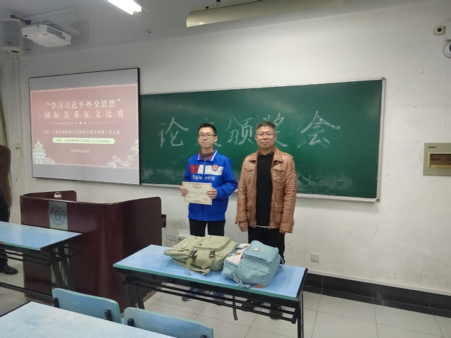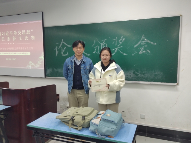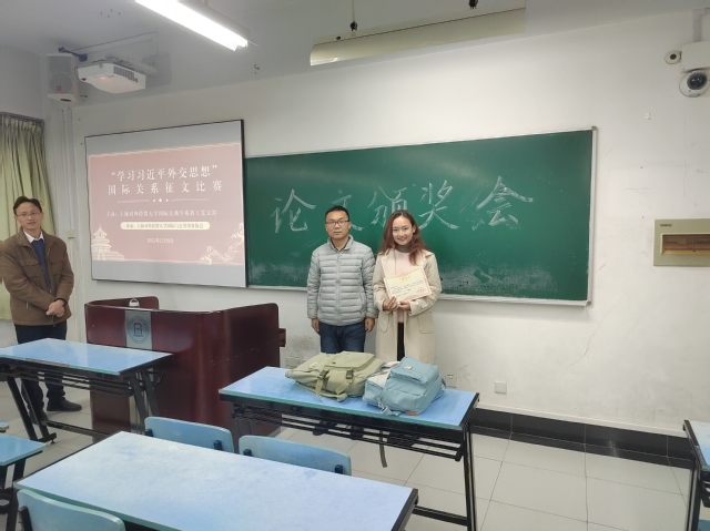 2021年12月9日下午,由國際關系學系教工黨支部主辦、國際與公共事務協會承辦的“學習習近平外交思想國際關系征文比賽頒獎儀式暨分享會”在學思樓C208室順利舉辦。國際關系學系教工黨支部書記吳曉鋒主持,國際關系學系教師代表出席并頒獎。