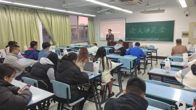 會上,吳曉鋒介紹了本年度征文比賽的收稿情況、評審標準與操作流程,強調了學術規范對論文寫作的重要性。吳曉鋒宣讀獲獎名單,王瑞領、崔文星、連波、孫曉分別為獲獎同學頒發獎狀。