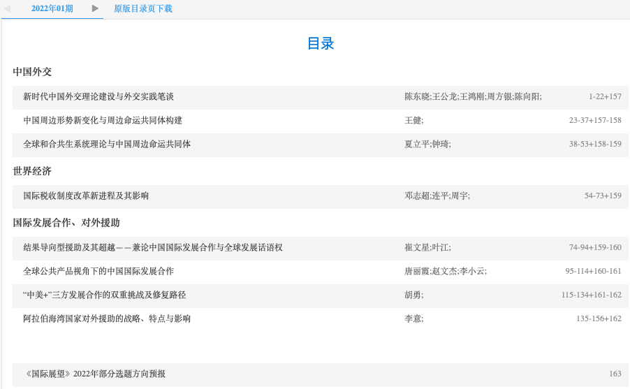 本文發表于國內國際關系類影響因子較高的CSSCI期刊《國際展望》2022年第一期。本文首先對結果導向性援助進行討論,認為結果導向型援助是對過程導向型援助的糾正,并通過案例對其進行分析與評價。再結合聯合國2030年議程及其對中國對外援助的影響,從三個面詳細論述了新時代中國國際發展合作對結果導向型援助的借鑒與超越,并將視角轉向全球發展,認為中國需要吸收西方國家和國際組織在結果導向型援助方面的研究成果,在合作實踐中結合聯合國可持續發展目標和指標,對國際發展合作的實踐進行改進與完善,在此基礎之上構建中國的全球發展話語權。