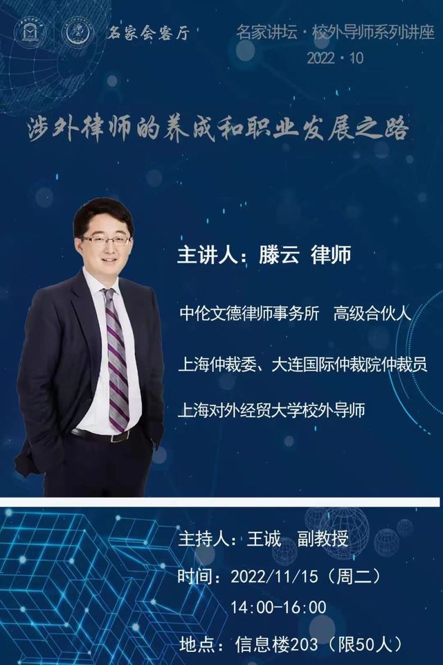 講座預告|滕云教授:涉外律師的養成和職業發展之路