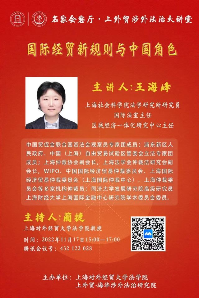 講座預告|王海峰博士:國際經貿新規則與中國角色