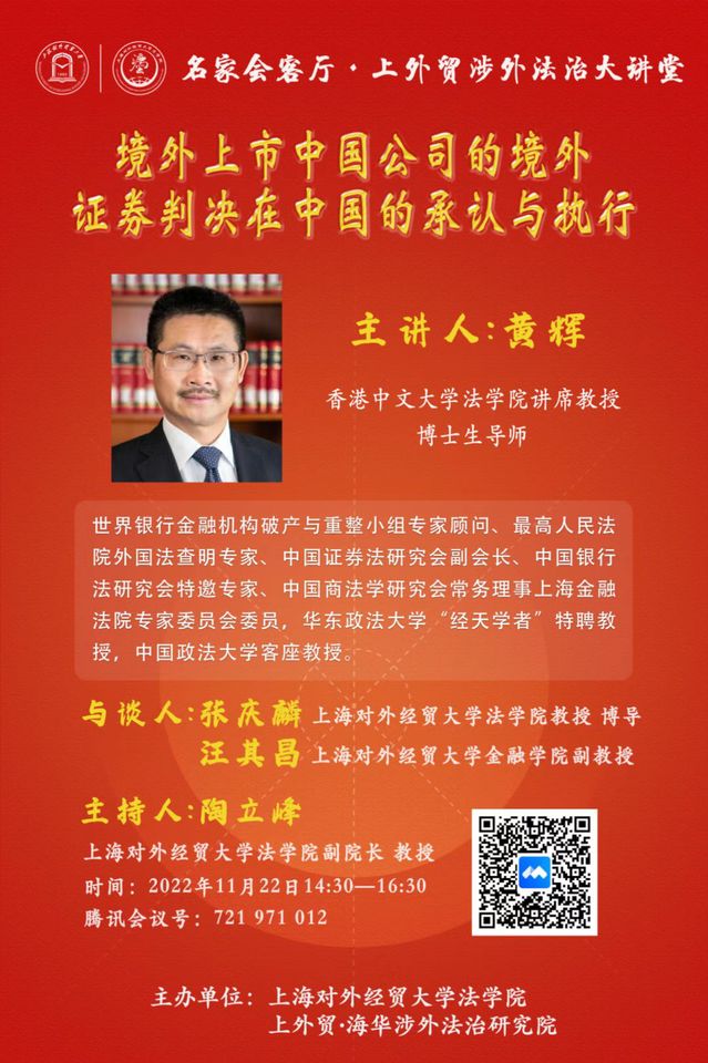 講座預告|黃輝教授:境外上市中國公司的境外證券判決在中國的承認與執(zhí)行