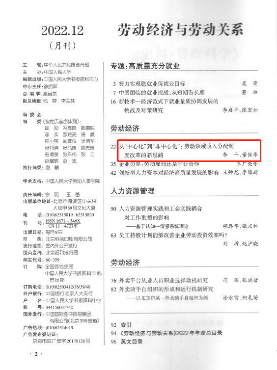 《從“中心化”到“非中心化”:勞動(dòng)領(lǐng)域收入分配制度改革的新思路》,轉(zhuǎn)載于人大復(fù)印報(bào)刊《勞動(dòng)經(jīng)濟(jì)與勞動(dòng)關(guān)系》2022年第12期