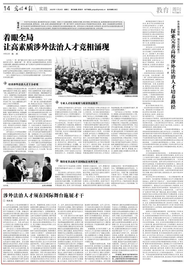 涉外法治人才是各領域國際交往與合作的重要保障,為維護國家利益、壯大國家力量、提升國家形象提供不可或缺的人才支撐。伴隨近年來全球經濟的不斷發展、國際交流的持續深入,我國參與國際經貿與國際事務的程度不斷加深,對涉外法治人才的需求也日益增長,亟須培養一批涉外法治專業人才。當前,涉外法治人才培養已進入發展快車道,培養方式日趨多元化,發展前景廣闊。