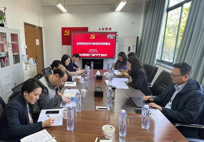 4月18日上午,法學(xué)院在博聞樓204會(huì)議室召開(kāi)學(xué)院黨委中心組擴(kuò)大會(huì)議,動(dòng)員部署學(xué)院黨紀(jì)學(xué)習(xí)教育工作。學(xué)院黨委認(rèn)真貫徹學(xué)習(xí)習(xí)近平總書(shū)記關(guān)于開(kāi)展黨紀(jì)學(xué)習(xí)教育的重要講話精神。學(xué)院黨政班子成員、黨支部書(shū)記、系主任代表、黨員代表參加本次會(huì)議。
