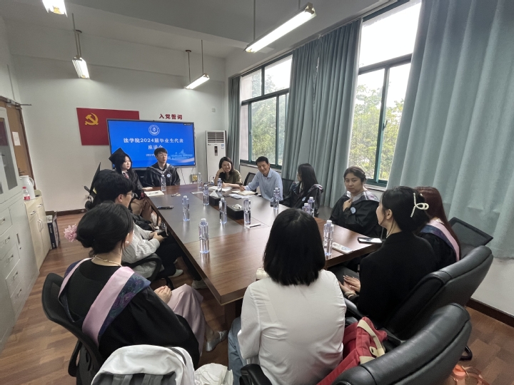 在畢業(yè)生求職的關(guān)鍵時期,為進一步解決他們在就業(yè)中遇到的困難,做好求職指導,增強就業(yè)信心,5月21日下午,法學院在博聞樓204會議室舉行2024屆本科畢業(yè)生代表座談會。法學院黨委書記黃靜與10名畢業(yè)生進行面對面交流,表達關(guān)心,悉心指導。黨委副書記商志民和本科畢業(yè)班輔導員閔時濤參加座談會。
