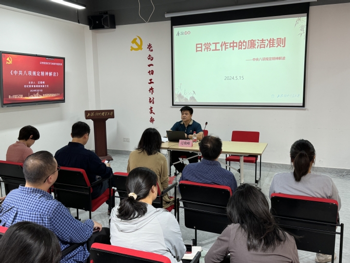 過曉峰以“日常工作中的廉潔準(zhǔn)則——中央八項規(guī)定精神解讀”為題,深入解讀了八項規(guī)定和八項規(guī)定精神的內(nèi)涵,并結(jié)合高校、公職機(jī)關(guān)的違紀(jì)典型案例為大家進(jìn)行了一場生動的警示教育,也讓師生黨員進(jìn)一步認(rèn)識到貫徹落實中央八項規(guī)定精神必須持之以恒,毫不松懈;進(jìn)一步認(rèn)識到作為黨員要始終堅守紅線,堅持廉潔自律,把紀(jì)律規(guī)矩挺在前,不斷增強(qiáng)政治自覺和行動自覺;進(jìn)一步認(rèn)識到正風(fēng)肅紀(jì),抓好作風(fēng)建設(shè),是我們黨保持純潔性和先進(jìn)性的重要保障。