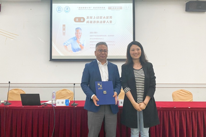 講座上,方健結(jié)合自身在母校求學(xué)經(jīng)歷、涉外律師職業(yè)經(jīng)歷,從國(guó)家發(fā)展需求、律師行業(yè)趨勢(shì)等方面入手,闡釋了加強(qiáng)涉外律師隊(duì)伍建設(shè)的重要性,重點(diǎn)就如何成為一名涉外律師為在校生提供了幾點(diǎn)建議。他認(rèn)為,首先要做高質(zhì)量的中國(guó)律師,要精通中國(guó)法律;其次是要擁有一個(gè)開(kāi)放的心態(tài),增強(qiáng)跨文化溝通能力;再次要有服務(wù)意識(shí),為當(dāng)事方提供專(zhuān)業(yè)化的法律服務(wù);最后要培養(yǎng)商業(yè)思維,站在客戶角度去思考和解決問(wèn)題。此外,他還鼓勵(lì)法學(xué)專(zhuān)業(yè)學(xué)生,在學(xué)好專(zhuān)業(yè)和語(yǔ)言的同時(shí),學(xué)習(xí)經(jīng)濟(jì)類(lèi)或金融類(lèi)知識(shí),努力將自己打造成復(fù)合型人才,對(duì)專(zhuān)業(yè)有敬重,對(duì)工作有追求,培養(yǎng)工匠精神。