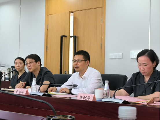 楊劍萍以“山中竹”黨建品牌為主線介紹了佘山法庭支部發揚和創新“楓橋經驗”,設立法官工作站、“板凳法庭”就地化解基層矛盾,參與基層社會治理的案例。