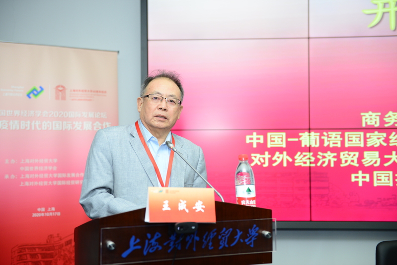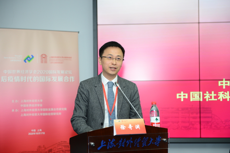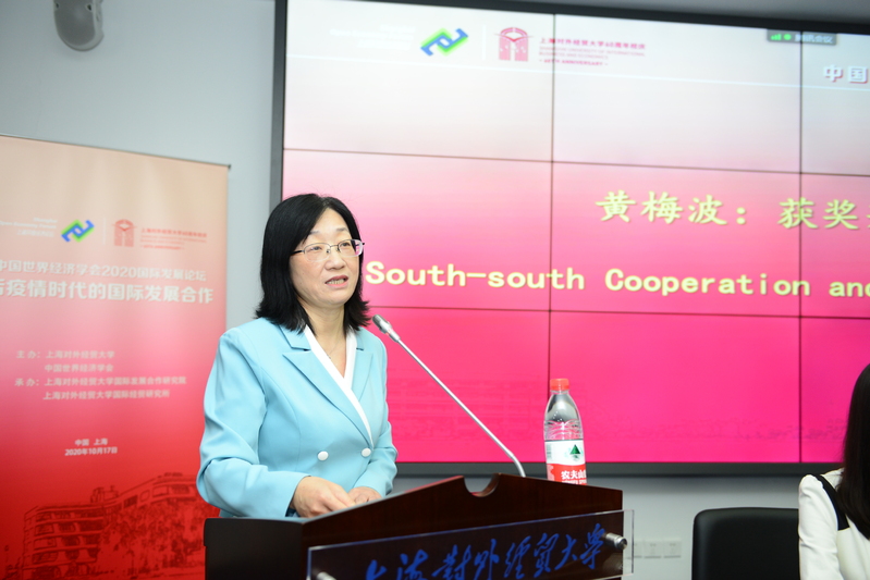 10月17日,由上海對外經貿大學與中國世界經濟學會主辦,國際發展合作研究院與國際經貿研究所承辦的主題為“后疫情時代的國際發展合作”中國世界經濟學會2020國際發展合作論壇在古北校區舉行。校黨委書記殷耀,中國農業發展銀行張文才副行長、商務部原歐洲司司長孫永福,商務部原援外司副司長、中國援外奉獻金獎獲得者王成安,國家國際發展合作署政策和規劃司代表谷瑩瑩,中國世界經濟學會代表、中國社科院世界經濟與政治研究所徐奇淵研究員出席論壇。來自國務院發展研究中心、商務部國際貿易與經濟合作研究院、中國社會科學院、復旦大學、廈門大學、吉林大學、中國農業大學、浙江師范大學、廣東外語外貿大學等高校和學術機構的專家學者,以及國家國際發展合作署、中國農業發展銀行、國家開發銀行、中國進出口銀行、中國貿促會投資促進中心、國際清算銀行等政府機關、行業機構的代表匯聚一堂,就后疫情時代的國際發展合作問題進行了深入探討。論壇開幕式由副校長張道方主持。