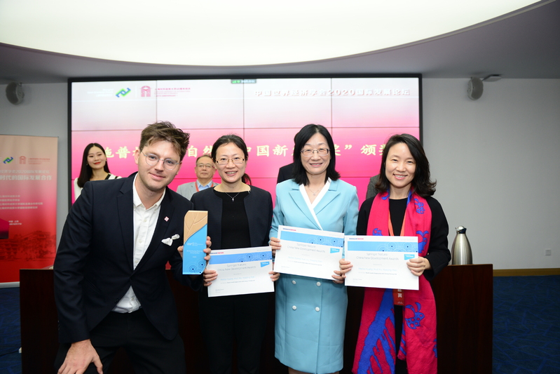 開幕式上還舉行了施普林格自然“中國新發展獎”頒獎儀式。國際發展合作研究院院長黃梅波教授、中國農業大學徐秀麗教授和商務部研究院毛小菁研究員合作的《南南合作與中國對外援助》一書成功入選今年“中國新發展獎”。論壇向黃梅波教授等三位作者頒發了獲獎證書和獎杯。黃梅波教授介紹了獲獎圖書的寫作背景和主要內容,并發表了獲獎感言。