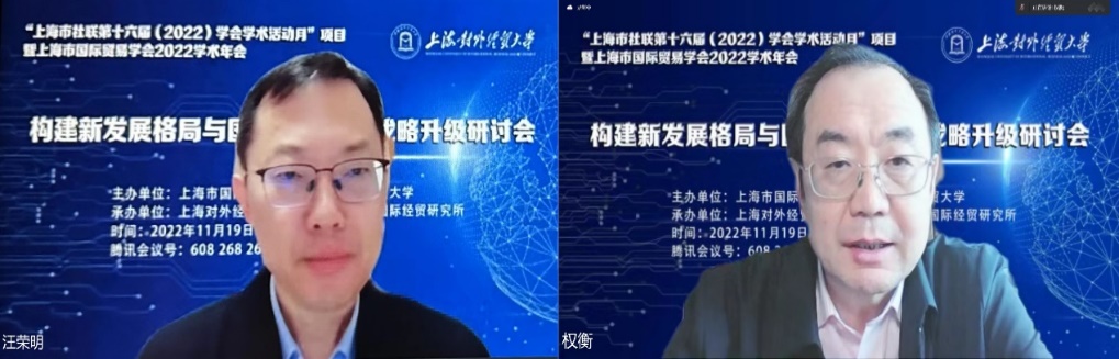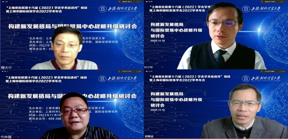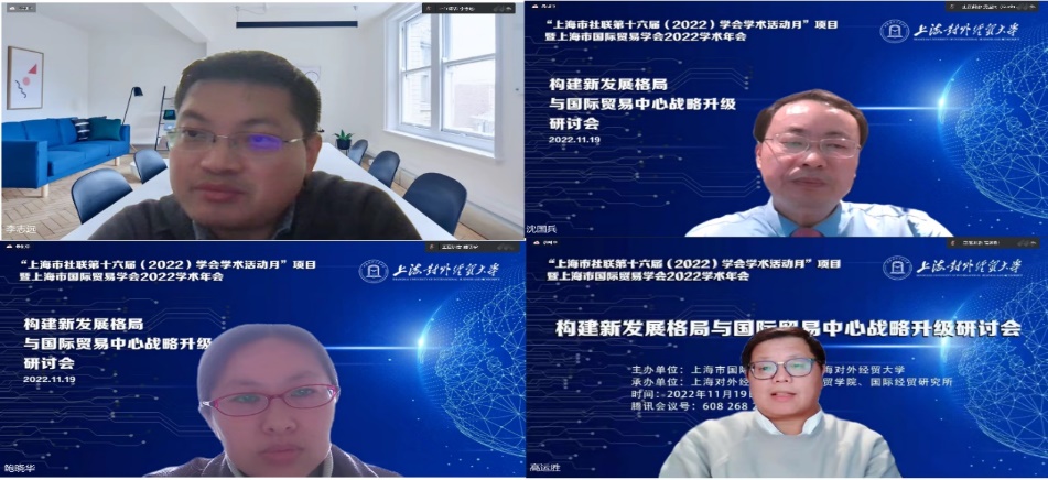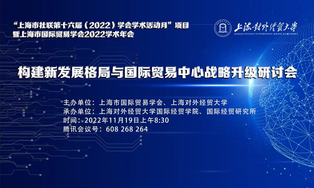 11月19日,由上海市國際貿易學會與上海對外經貿大學主辦,上海對外經貿大學國際經貿學院、國際經貿研究所承辦的“上海市社聯第十六屆(2022)學會學術活動月”系列學術活動——上海市國際貿易學會2022年學術年會暨“構建新發展格局與國際貿易中心戰略升級研討會”,以線上會議方式順利召開。