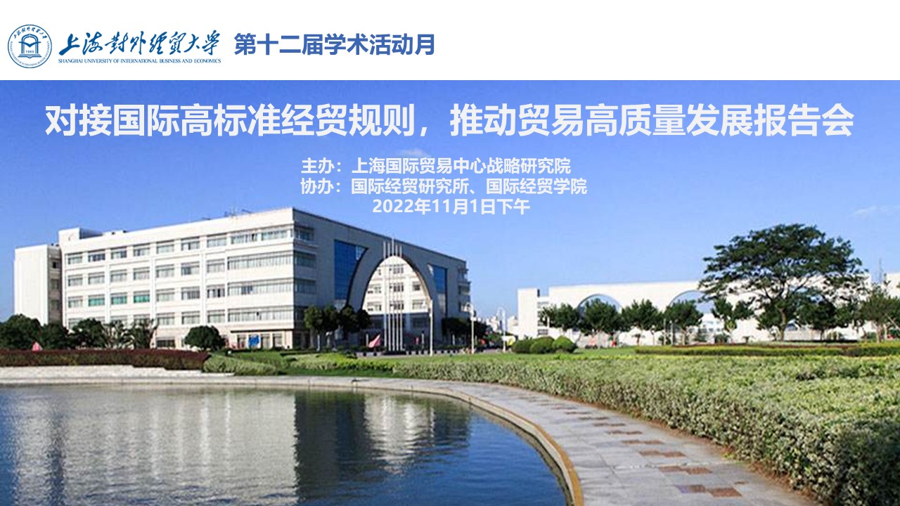 11月1日,由上海對外經貿大學上海國際貿易中心戰略研究院主辦,上海對外經貿大學國際經貿研究所、國際經貿學院協辦的“對接國際高標準經貿規則,推動中國經濟高質量發展研討會”開幕。來自上海市商務委員會、上海對外經貿大學的大約20名校內外專家和學生通過騰訊會議參加了本次會議。